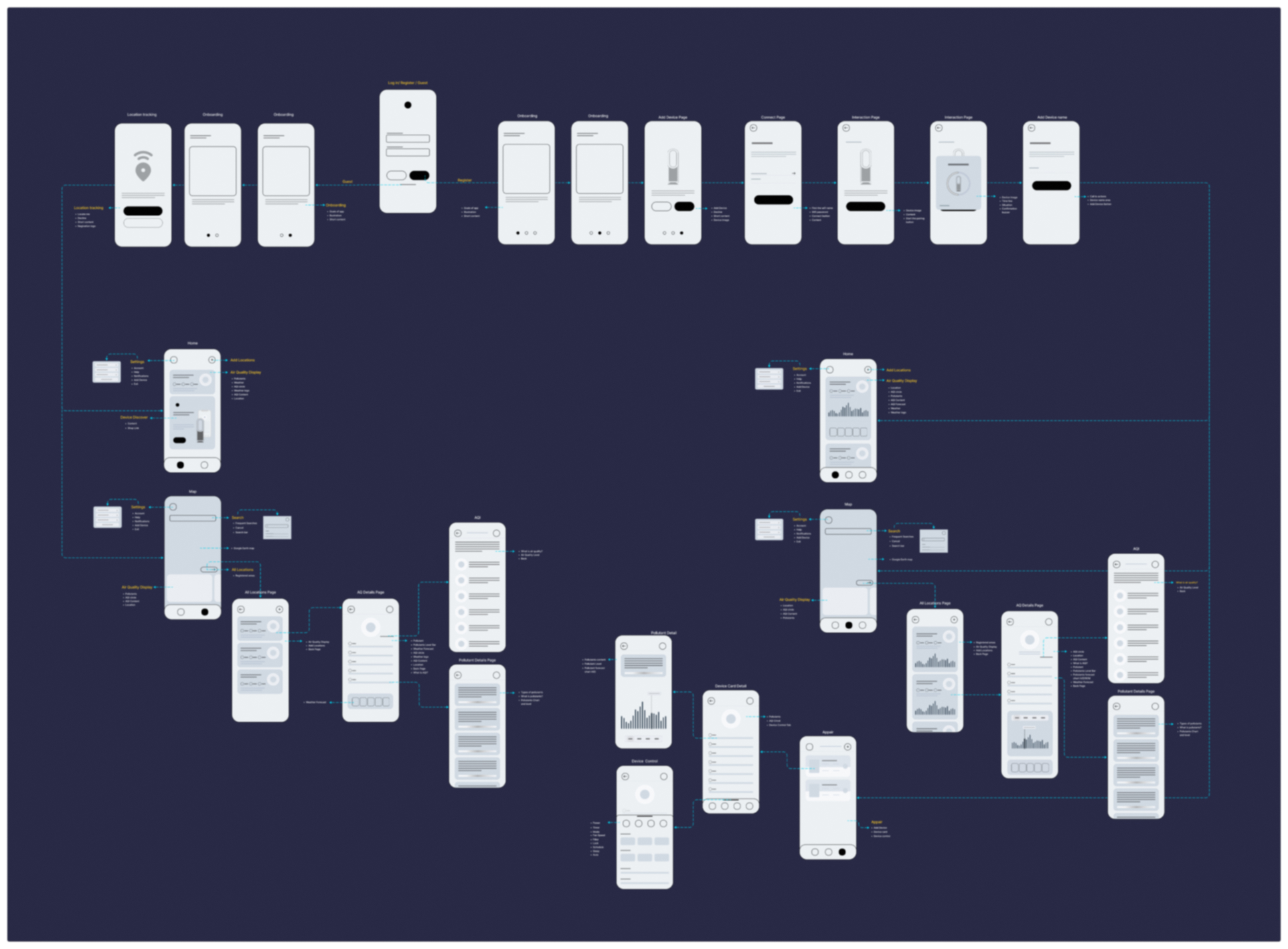 • Analyzed the flows of application screens for both air purifiers and non-device-based air quality measurement scenarios to align with user needs and functional requirements.