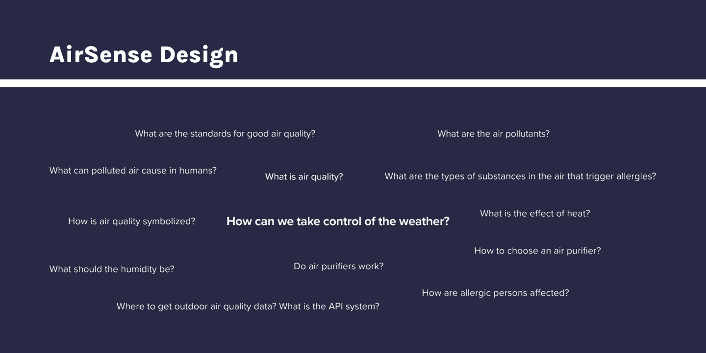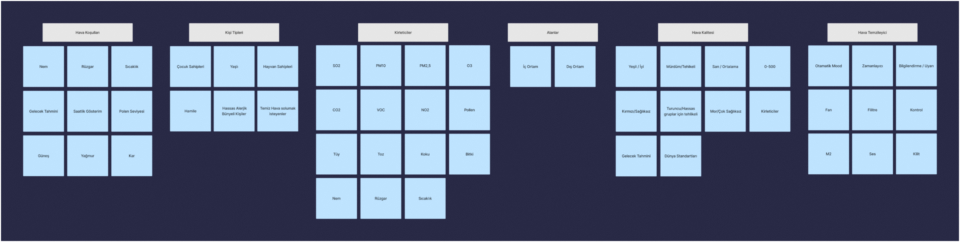• Grouped the findings under six key headings: User Types, Spaces, Weather Conditions, Pollutants, Air Quality, and Air Purifiers.